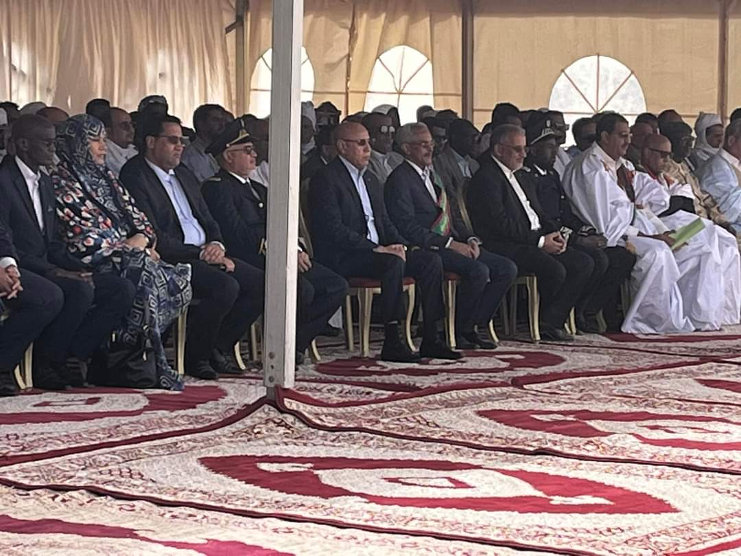 أشرف فخامة رئيس الجمهورية، السيد محمد ولد الشيخ الغزواني، اليوم الأحد، على وضع حجر الأساس لمشروع طريق أطار-شنقيط، وذلك في إطار الفعاليات المخلدة للذكرى ال63 لعيد الاستقلال الوطني. ويبلغ طول هذه الطريق 80 كلم، وهي ممولة من طرف الدولة بمبلغ يزيد على 12 مليار و273 مليون أوقية قديمة خالية من الرسوم والضرائب، وسيتم إنجازها في مدة (32) شهرا، ويتولى مراقبتها تجمع مكاتب (BEESAS/AFRICA). وقد استمع فخامة رئيس الجمهورية إلى شروح مفصلة حول مشروع الطريق قدمها له معالي وزير التجهيز والنقل، قبل أن يقوم بوضع حجر الأساس إيذانا بانطلاقة أشغال الطريق. وأكد معالي وزير التجهيز والنقل السيد محمد عالي سيدي محمد، في كلمة له بهذه المناسبة، أن البرنامج الانتخابي لفخامة رئيس الجمهورية، الذي تشرف حكومة معالي الوزير الأول السيد محمد ولد بلال مسعود على تنفيذه، يتضمن إنشاء طريق أطار-شنقيط، وهو ما عمل قطاع التجهيز والنقل جاهدا على أن لا ينظم مهرجان مدائن التراث لهذه المدينة إلا وقد تم تجسيده على أرض الواقع. وأضاف أن تشييد هذا الطريق ستواكبه مجموعة من الأشغال الملحقة ذات الطابع الاجتماعي الهادفة إلى الرفع من مستوى الخدمات العمومية ستكلف 726 مليون أوقية قديمة، ويتعلق الأمر ببناء مركزين صحيين من الفئة (ب) في لكراره وأمدير، وسوق نسوي مكون من ثلاثين (30) حانوتا، وروضة أطفال، وإعادة تأهيل مدرسة في حي البئر، في مدينة شنقيط.